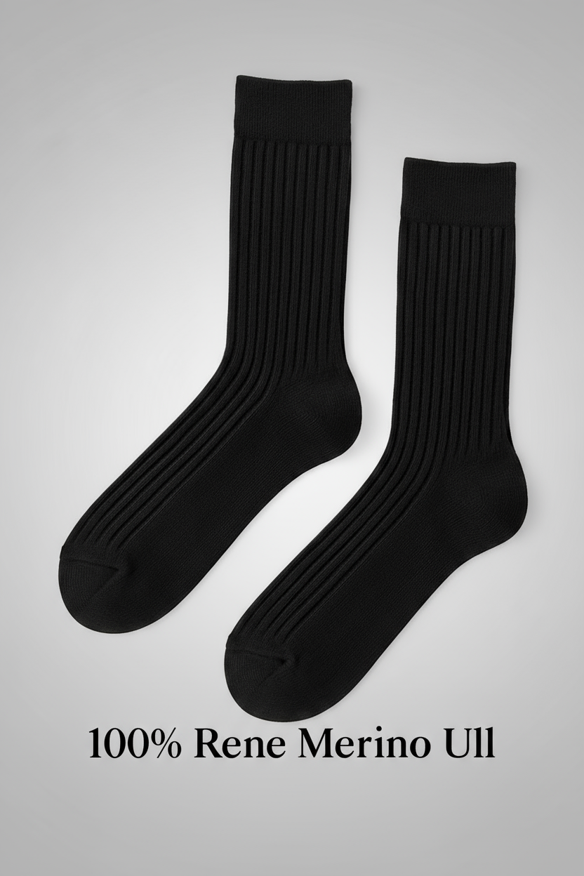 Den ribbestrikkede, elegante designen gjør ullsokkene like godt egnet til dressko som til fritidssko og støvler, og gir en tidløs stil.